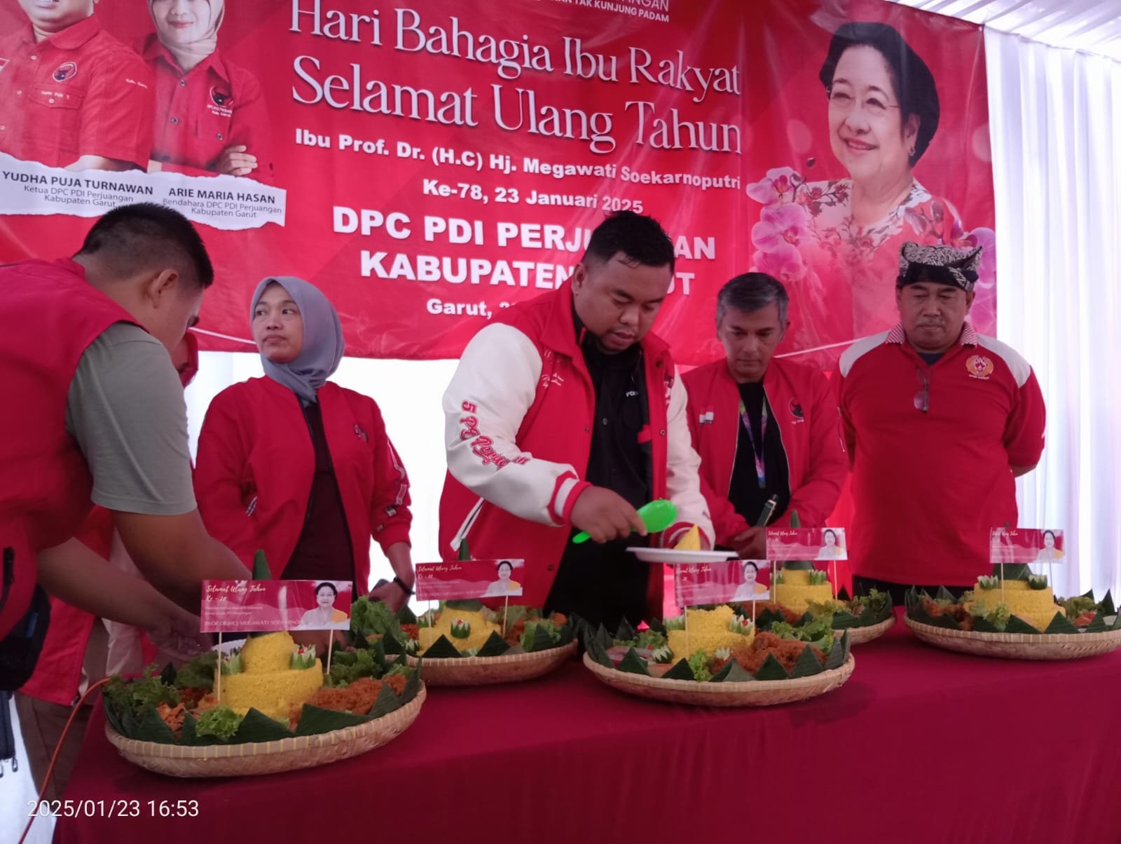 Pada kesempatan ini saya ketua bersama semua jajaran pengurus dpc badan dan sayap partai PDI Perjuangan kabupaten Garut mengucapkan selamat ulang tahun yang ke -78 kepada ketua umum ibu Megawati sukarno putri, semoga ibu selalu diberikan kesehatan, dan kelancaran dalam menjalankan tugas sebagai ibu bangsa, yang selalu menyerukan kepada para keder PDI Perjuangan agar bekerja untuk rakyat dan tetaplah berada ditengah mereka yang membutuhkan ungkapnya.