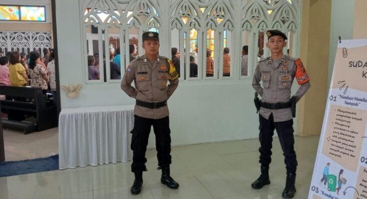 “Pengamanan yang kami lakukan, baik pengecekan didalam gereja, disekitar dan barang bawaan jemaah untuk menjaga dari hal yang dapat mengganggu jalannya Ibadah umat Kristiani. Anggota juga melaksanakan pengaturan lalu lintas agar tidak terjadi kecelakaan dan kemacetan jalur. Ini semua kami lakukan sesuai dengan tupoksi Polri sebagai pelindung, pengayom dan pelayan masyarakat,” kata Kompol Alan Dahlan.