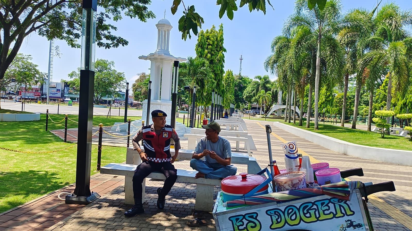 Pengamanan ini melibatkan dua personel Satuan Samapta Polres Ciamis Polda Jabar. Keduapersonel itu, diantaranya Bripda Ivan dan Bripda Ilham. Mereka berjalan kaki mendatangi setiap warga yang beraktifitas di kawasan Alun Alun Ciamis untuk memberikan pesan-pesan kamtibmas.