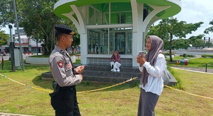 CIAMIS ~ Personel Satuan Samapta Polres Ciamis Polda Jabar melaksanakan patroli jalan kaki dalam rangka cipta kondisi di tempat keramaian masyarakat dan area publik. Patroli jalan kaki ini dilaksanakan di Alun Alun Ciamis, Ciamis, Kabupaten Ciamis, Jawa Barat, Jumat (29/11/2024).