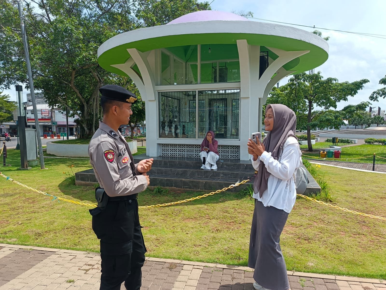 CIAMIS ~ Personel Satuan Samapta Polres Ciamis Polda Jabar melaksanakan patroli jalan kaki dalam rangka cipta kondisi di tempat keramaian masyarakat dan area publik. Patroli jalan kaki ini dilaksanakan di Alun Alun Ciamis, Ciamis, Kabupaten Ciamis, Jawa Barat, Jumat (29/11/2024).