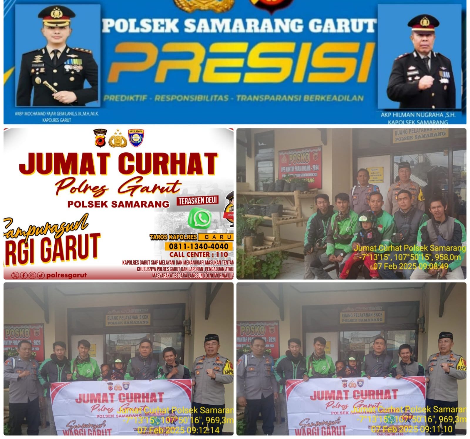 Garut.Jejak-kriminal.com-Polres Garut Melalui Kapolsek Samarang melaksanakan kegiatan Program Jum’at Curhat yang bertempat di mapolsek Samarang Kecamatan Samarang. Kegiatan ini dihadiri oleh pejabat utama Polsek Samarang AKP Hilman Nugraha.,S.H.M.H. beserta personel, dan komunitas Gojek. Kecamatan Samarang. (07/1/2025)