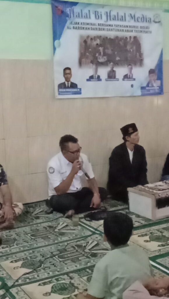 KAB. BANDUNG, 30 April 2025 — Dalam suasana penuh kehangatan dan kepedulian, redaksi Media Jejak-Kriminal menggelar acara Halalbihalal bersama Yayasan Nurul Qobul Al-Barokah serta memberikan santunan kepada anak-anak yatim-piatu. Kegiatan ini berlangsung khidmat di Masjid Jami Al-Baqarah, Kampung Cikoneng, Desa Cibiru Wetan, Kecamatan Cileunyi, Kabupaten Bandung.