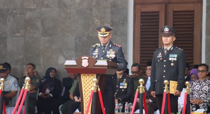 Kapolres Ciamis Polda Jabar AKBP Akmal, SH., S.I.K., M.H., menyampaikan, pada hari yang bersejarah bagi Polri Tahun 2025, tentunya menjadi tonggak sejarah dimulainya era kepemimpinan dan perjalanan baru bagi bangsa Indonesia. Pasca terlaksananya pesta demokrasi tahun 2024 yang berjalan lancar dan kondusif dengan terpilihnya H. Prabowo Subianto dan Gibran Rakabuming Raka sebagai Presiden Dan Wakil Presiden Republik Indonesia Periode Tahun 2024 – 2029.