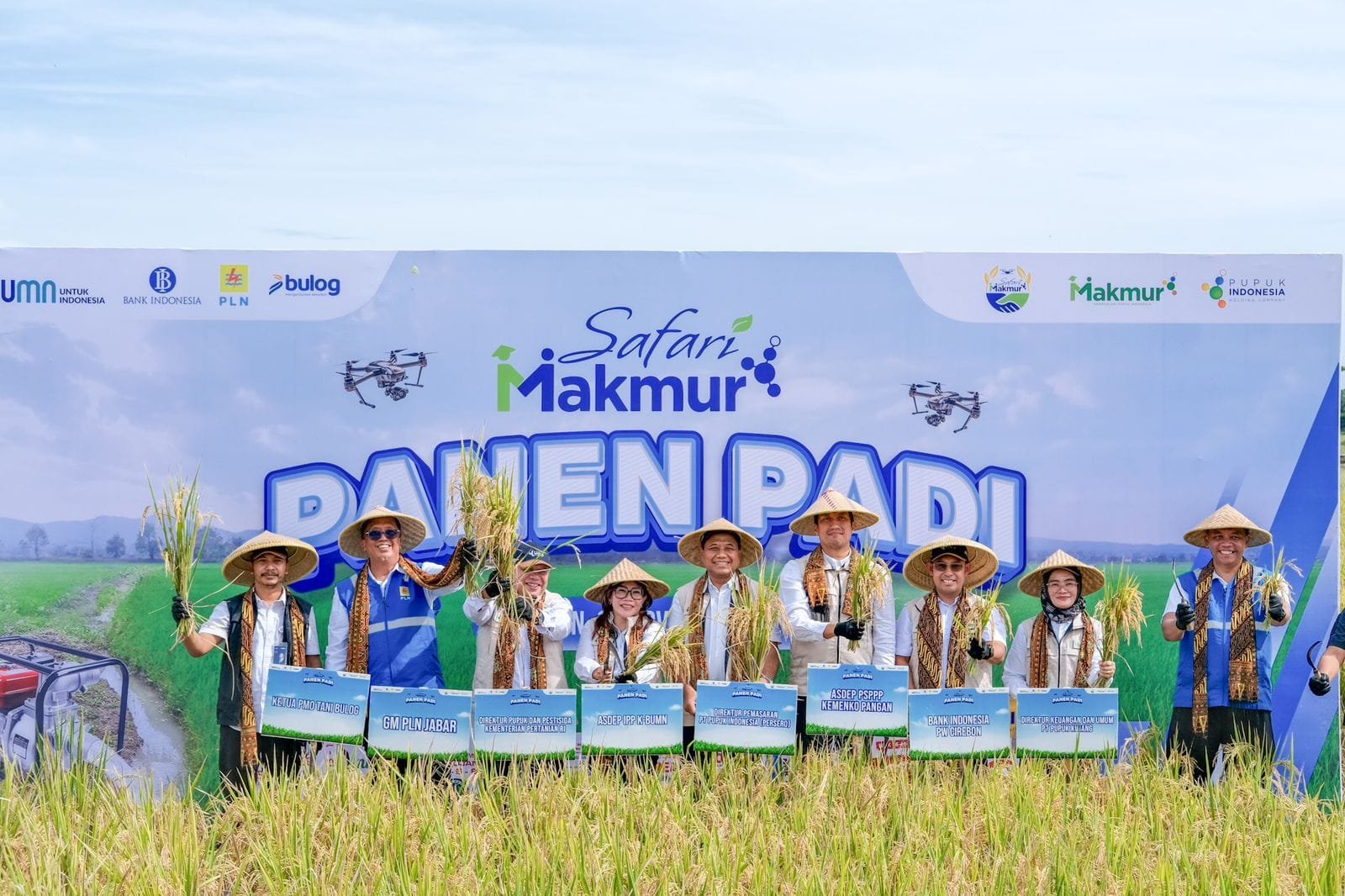 Kegiatan Safari Makmur 2024 dihadiri oleh GM PLN UID Jabar, Asdep Pengelolaan Sarana dan Prasarana Produksi Pertanian Kemenko Pangan, Asdep Industri Pangan dan Pupuk Kementrian BUMN, Direktur Pupuk & Pestisida Kementan, Direktur Pemasaran PT Pupuk Indonesia, Deputi Kepala Perwakilan Bank Indonesia Cirebon, Kepala Bagian pemasaran PT Askrindo, Ketua PMO Mitra Tani Bulog, serta 50 petani dari Kelompok Tani Tunas Harapan.