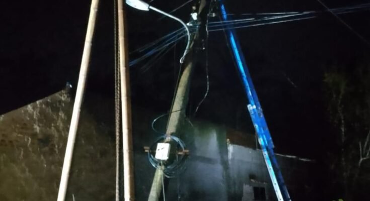 Guna mempercepat penormalan, PLN Pangandaran menerjunkan personil ke beberapa titik gangguan salah satunya ke titik tiang roboh.