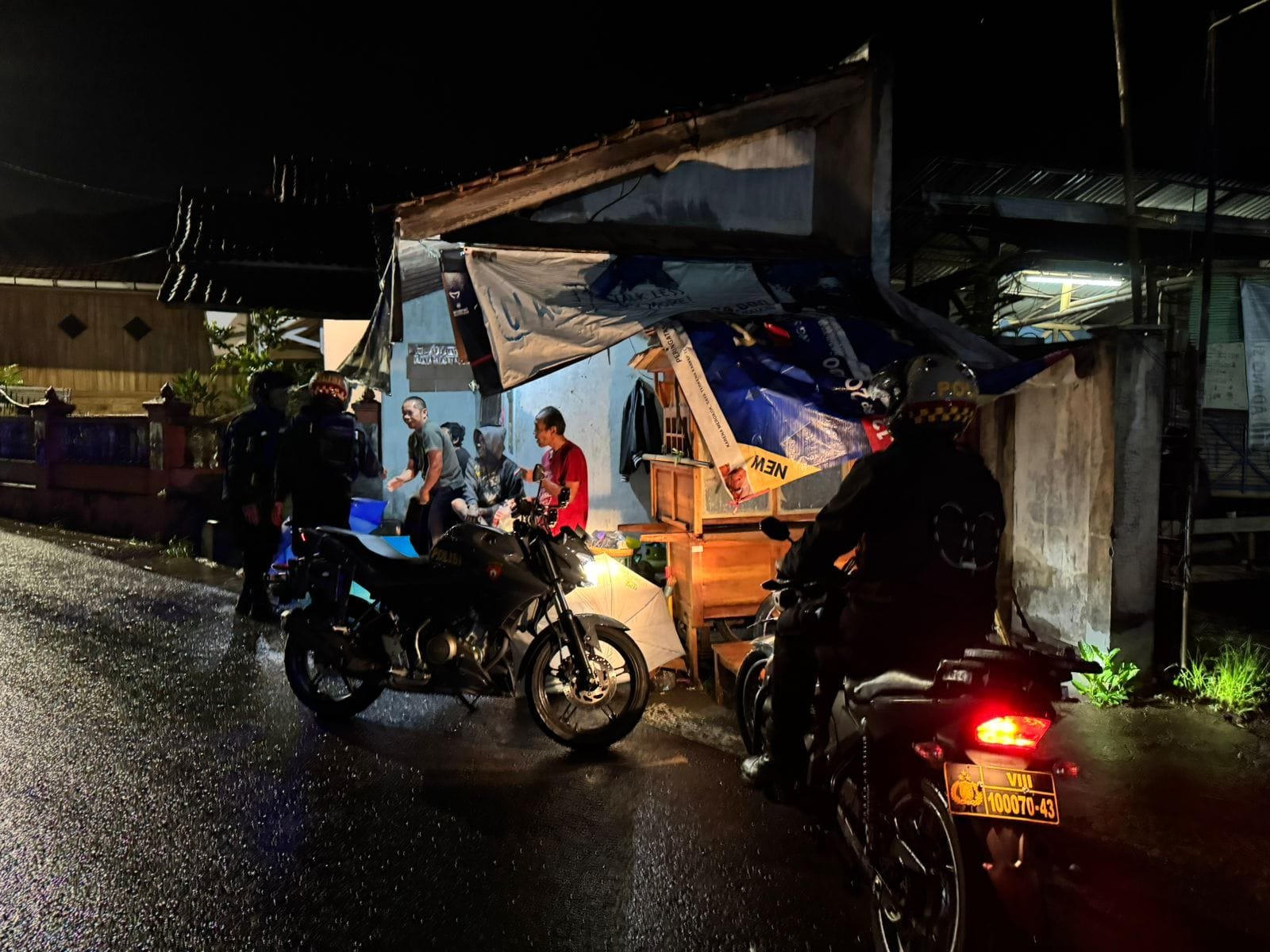 CIAMIS ~ Pasukan Patroli Dialogis Roda 2 Satuan Samapta Polres Ciamis Polda Jabar mendatangi kantor pelayanan publik dan objek vital serta pemukiman warga dalam rangka cipta kondisi antisipasi gangguan kamtibmas. Patroli kali ini dengan menyambangi Pos Ronda Rancapetir, Kabupaten Ciamis, Jawa Barat, Jumat (17/1/2025), dini hari.