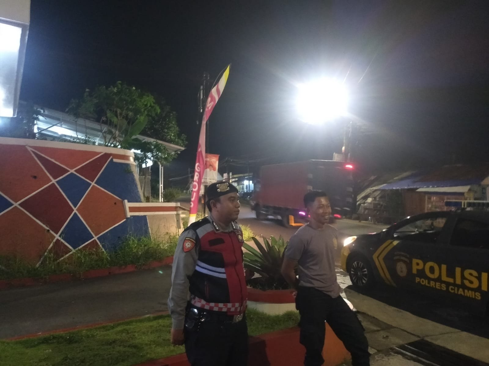 CIAMIS ~ Personel Satuan Samapta Polres Ciamis Polda Jabar melaksanakan Patroli Dialogis dalam rangka cipta kondisi antisipasi gangguan kamtibmas di malam hari. Patroli kali ini dengan menyambangi kawasan Perum Garden City, Ciamis, Kabupaten Ciamis, Jawa Barat, Kamis (7/11/2024), dini hari.