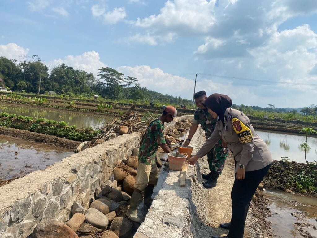 CIAMIS ~ Personel Polsek Ciamis Polres Ciamis Polda Jabar secara humanis melaksanakan koordinasi dan komunikasi sekaligus pemantauan kegiatan rehabilitasi saluran irigasi Citapen. Pembangunan itu dilaksanakan di wilayah Citapen, Desa Mekarjadi, Kecamatan Sadananya, Kabupaten Ciamis, Jawa Barat, Rabu (3/7/2024).