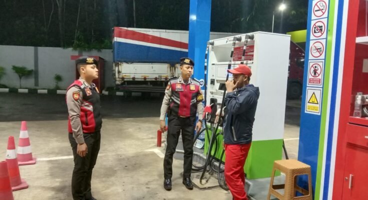 CIAMIS ~ Personel Satuan Samapta Polres Ciamis Polda Jabar mendatangi kantor pelayanan publik dan objek vital dalam rangka cipta kondisi antisipasi gangguan kamtibmas. Patroli secara humanis kali ini dengan menyambangi SPBU Benteng, Kelurahan Benteng, Kecamatan Ciamis, Kabupaten Ciamis, Jawa Barat, Selasa (10/6/2025), dini hari.