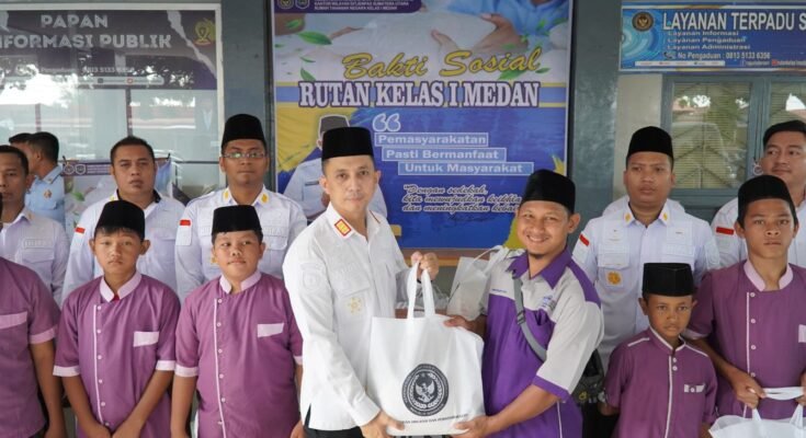 Medan – Dalam rangka menyambut tahun baru Islam 1 Muharram 1447 H. Rumah Tahanan Negara (Rutan) Kelas I Medan Kanwil Ditjenpas Sumut menunjukkan kepedulian dengan menggelar kegiatan bakti sosial berupa pemberian sembako kepada keluarga warga binaan kurang mampu dan anak-anak yatim dari panti asuhan. Kamis (26/6). Kegiatan ini merupakan bagian dari mewujudkan 13 Program Akselerasi yang dicanangkan oleh Menteri Imigrasi dan Pemasyarakatan, Agus Andrianto.