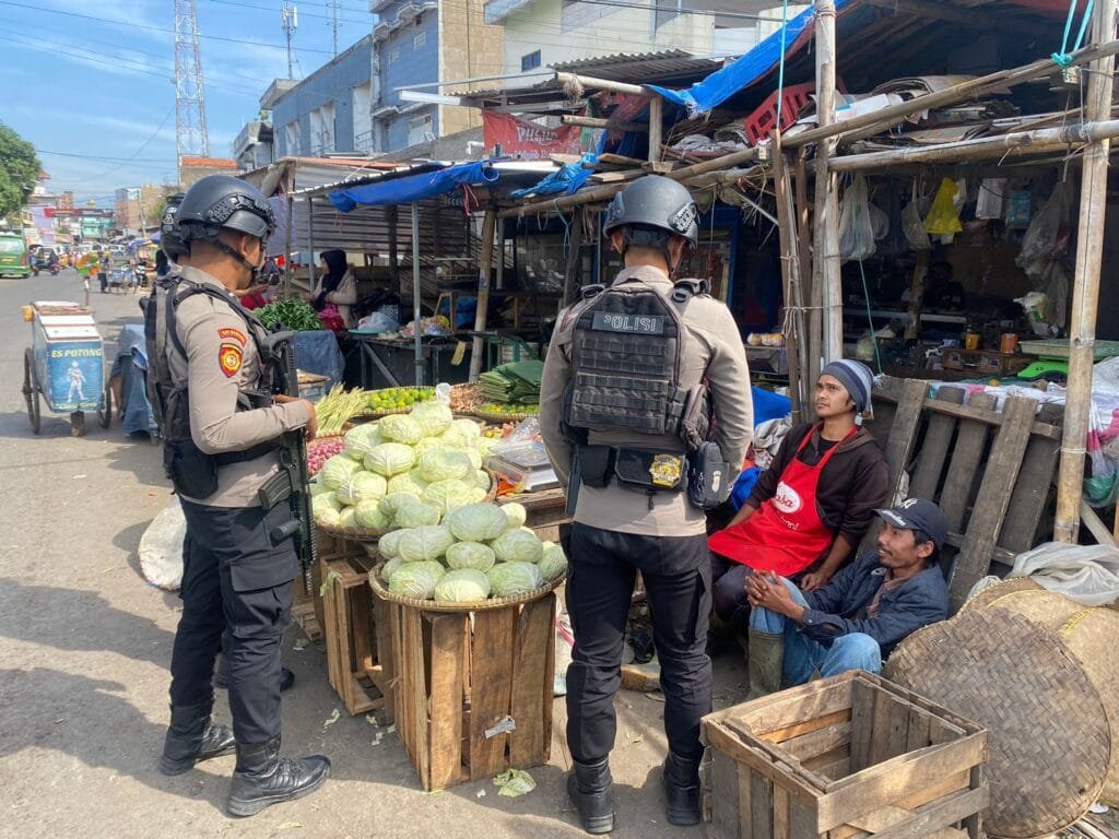 Patroli jalan kaki ini bertujuan untuk mencegah tindak kejahatan, menjaga ketertiban umum, dan memberikan rasa aman kepada para pedagang serta pengunjung pasar.