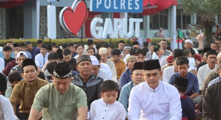 Garut – Dalam semangat kebersamaan dan mempererat tali silaturahmi antara kepolisian dan masyarakat, Kapolres Garut AKBP Mochamad Fajar Gemilang melaksanakan Salat Idul Adha 1446 H bersama warga di halaman Mapolres Garut, Jumat pagi (06/06/2025).