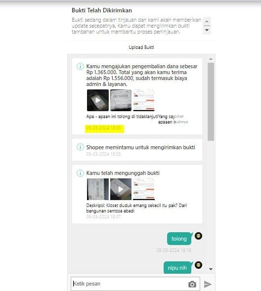 Ini menjadi sebuah kekecewaan yang sangat berat bagi pelanggannya,tak 1×24 peristiwa ini terjadi ; pemesanan yang seharusnya closet duduk dengan harga Rp 1.556.000,- kini menjadi barang kecil yang mungkin harga 2rb rupiah belum tau apa isinya.