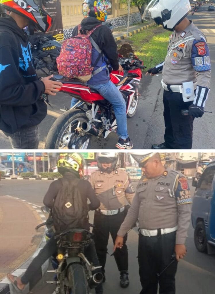 “Pelanggar yang menggunakan kendaraan berknalpot tidak sesuai spesifikasi teknis kami berikan teguran simpatik tertulis sebagai efek jera, serta dibuatkan juga surat pernyataan untuk bersedia melepas dan menyerahkan knalpot itu untuk dimusnahkan oleh petugas,” jelasnya.