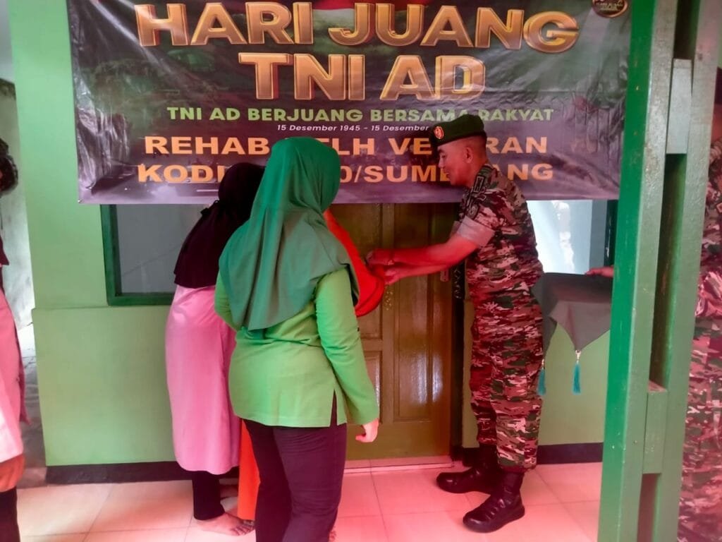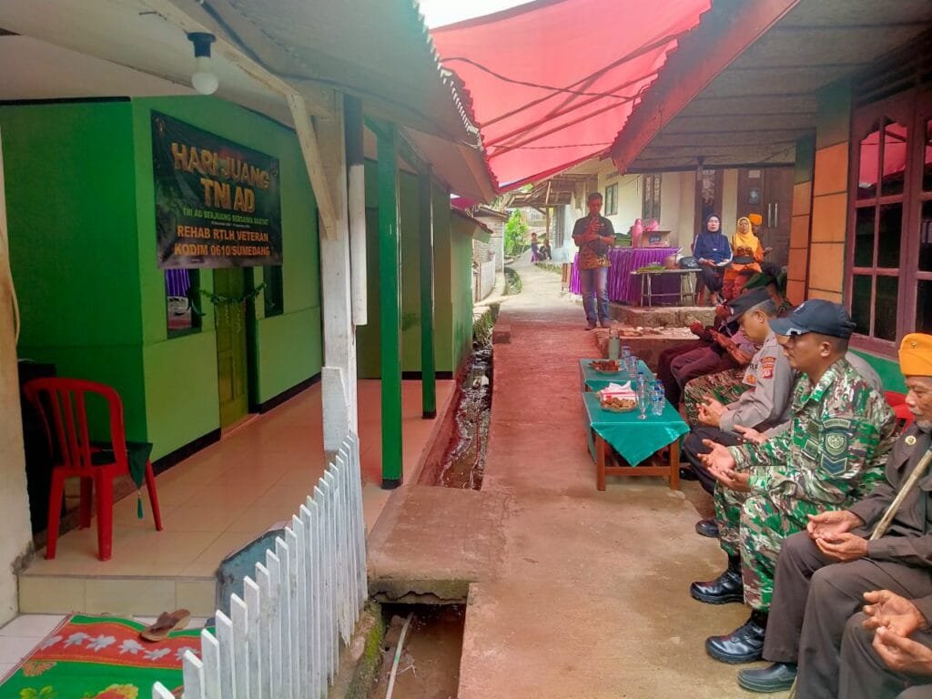 Danramil 1008/Buahdua Kapten Inf Yayat Sudrajat mengatakan, kegiatan hari ini adalah peresmian rumah tidak layak huni (Rutilahu) milik Ibu Cimih warga desa Wanajaya Kecamatan Surian yang telah selesai dibangun berkat kerjasama Kodim 0610/Sumedang dengan Baznas Kabupaten Sumedang dalam rangka Hari Juang TNI AD ke 79 tahun 2024