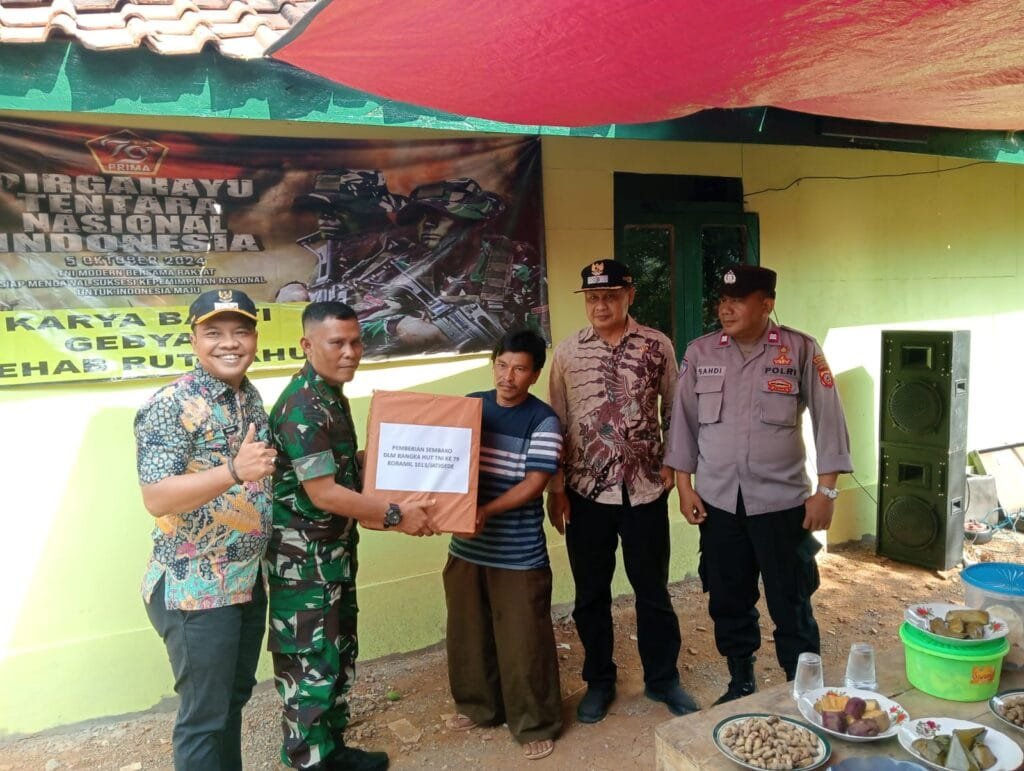 Sumedang- Bertempat di Dusun Burujul RT 01 RW 03 Desa Jemah Kecamatan Jatigede Kabupaten Sumedang, Telah dilaksanakan kegiatan Peresmian Rehab Rutilahu Dalam Rangka HUT TNI Ke 79 Tahun 2024 di wilayah Koramil 1013/Jatigede Kodim 0610/Sumedang, yang diresmikan oleh Camat Jatigede beserta Unsur Forkopincam Jatigede. Rabu(02/10/2024)