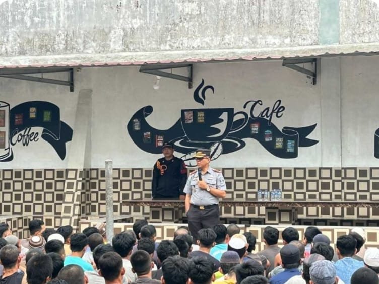 Batu Bara – Usai kegiatan Apel Pagi, Kalapas Labuhan Ruku Soeotopo Berutu yang didampingi Ka KPLP Ziko Lukita dan Karupam Marlan memberikan arahan kepada Warga Binaan Pemasyarakatan (WBP) pada halaman Blok Akasia Lapas Labuhan Ruku, Senin (17/02/2025).