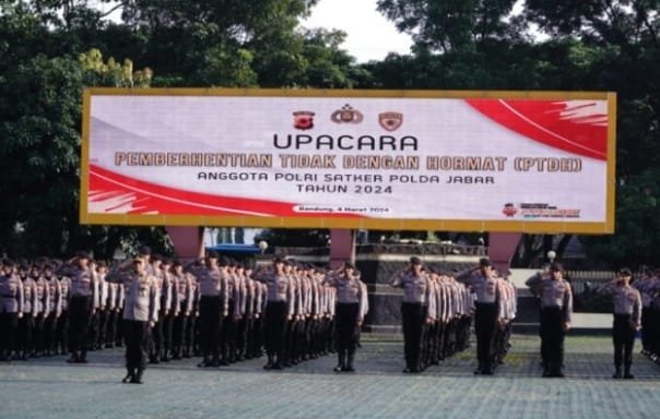 Kapolda Jabar mengatakan bahwa Upacara Pemberhentian Tidak Dengan Hormat merupakan salah satu wujud dan bentuk realisasi komintmen Pimpinan Polri dalam memberikan sanksi hukuman bagi personel yang melakukan pelanggaran baik pelanggaran disiplin maupun kode etik Kepoliisan Negara Republik Indonesia.