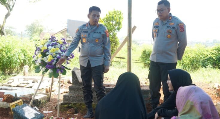 Setelah mengunjungi rumah duka, Kapolda Jawa Barat, Irjen Pol Dr. Akhmad Wiyagus, melanjutkan kunjungannya ke lokasi pemakaman almarhum Aipda Anumerta Anditia Munartomo. Kapolda Jabar hadir untuk memberikan penghormatan terakhir di pusara sang pahlawan yang gugur dalam tugas.