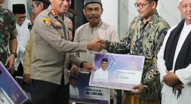 CIAMIS ~ Kapolres Ciamis Polda Jabar AKBP Akmal SH., S.I.K., M.H., melaksanakan tarawih keliling bersama Forkopimda Kabupaten Ciamis. Tarawih keliling ini dilaksanakan di wilayah Ciamis bagian Selatan, tepatnya di Masjid Imam Syafi’i (Eks Icakan) Desa Sukamulya, Kecamatan Baregbeg, Kabupaten Ciamis, Jawa Barat, Senin, 24 Maret 2025, malam.