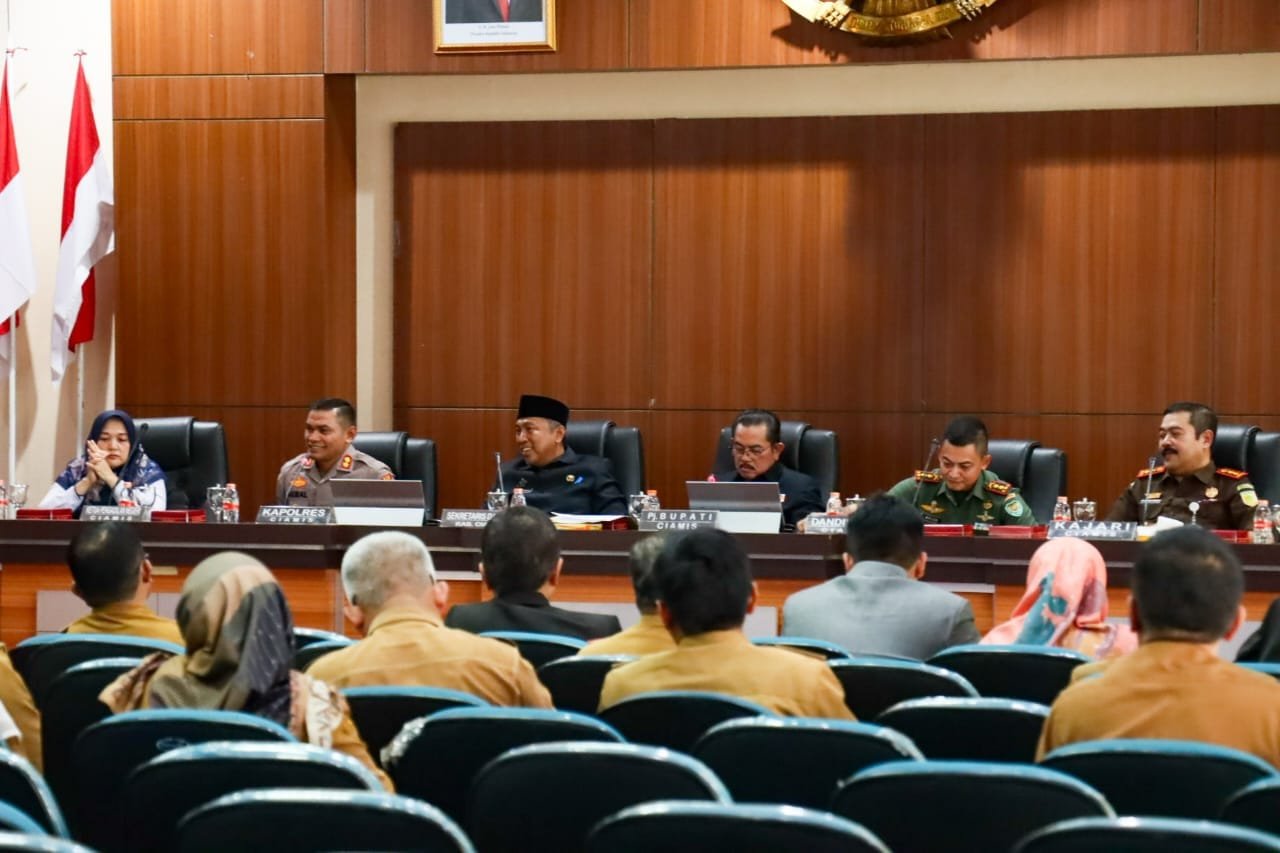 Rakor ini dipimpin langsung oleh Pj. Bupati Ciamis H. Engkus Sutisna. Sementara Kapolres Ciamis Polda Jabar hadir duduk deretan meja Pj. Bupati Ciamis bersama unsur Forkopimda Kabupaten Ciamis.