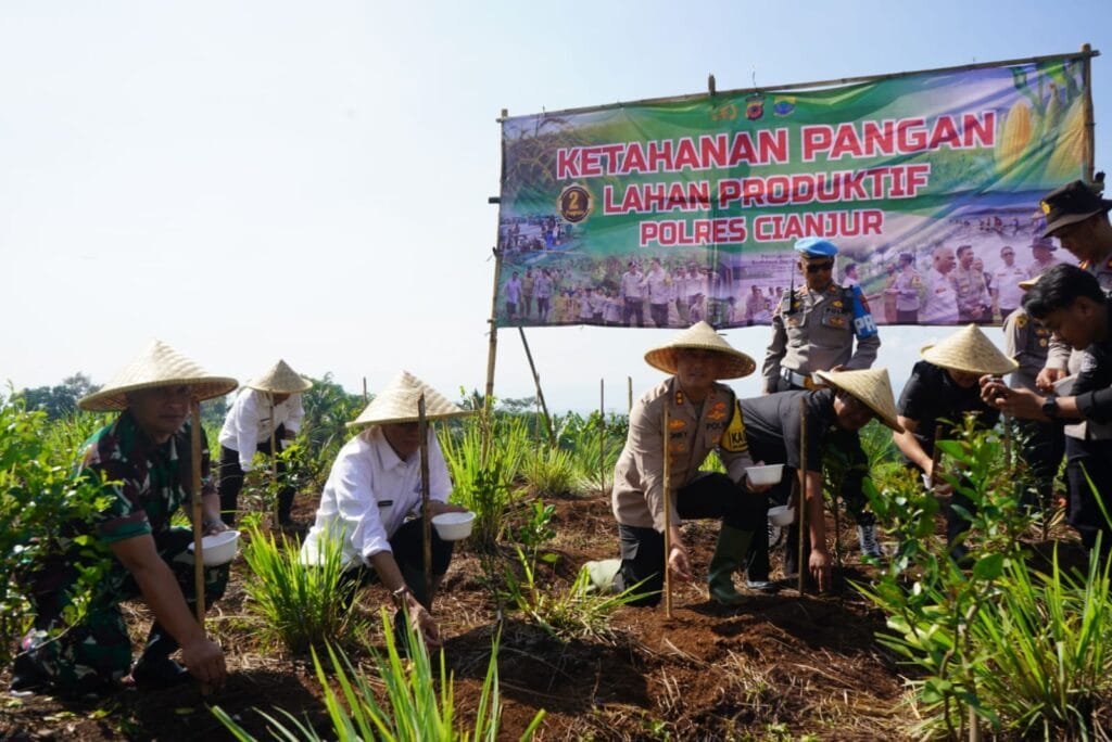 Dalam mendukung program tersebut, Polres Cianjur telah menindak lanjutinya dengan menyediakan lahan seluas kurang lebih 15 hektar dan sudah dilakukan penanaman bibit jagung serta tanaman lainnya yang berkolaborasi dengan Dinas Pertanian Kabupaten Cianjur.