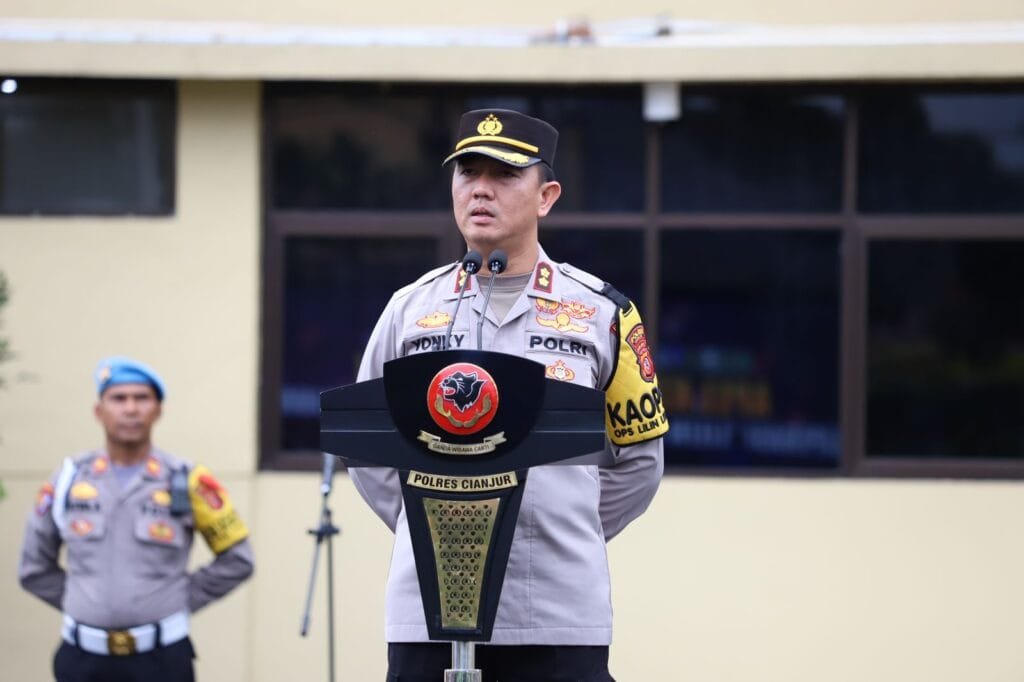 Kapolres Cianjur juga mengingatkan para personel untuk selalu berhati-hati dalam menjalankan tugas. “Utamakan keselamatan, waspadai ancaman yang mungkin timbul baik dari cuaca, individu, maupun situasi di lapangan. Tetap fokus dan laksanakan tugas dengan sebaik-baiknya,” pesannya.
