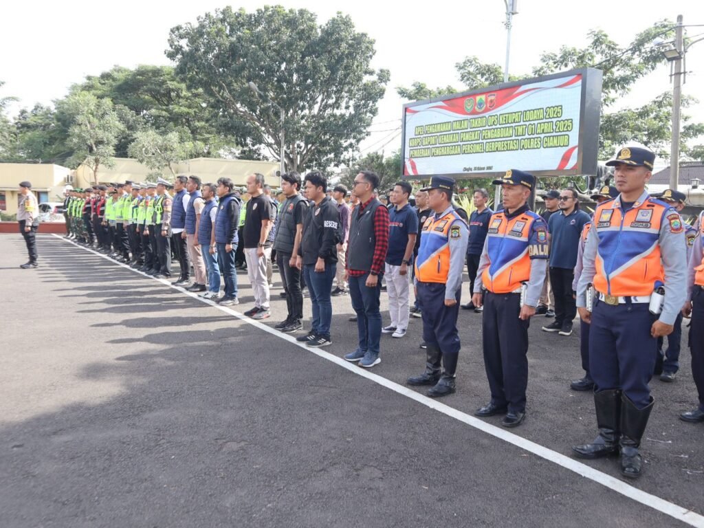 Cianjur – Jejak-kriminal.com-Kapolres Cianjur, AKBP Rohman Yonky Dilatha, S.I.K., M.Si., M.H., memimpin Apel Pengamanan Malam Takbir Ops Ketupat Lodaya 2025 serta Korps Raport Kenaikan Pangkat Pengabdian dan Pemberian Penghargaan Personel Berprestasi Polres Cianjur. Kegiatan ini berlangsung di Lapangan Apel Mapolres Cianjur pada Minggu (30/3/2025).