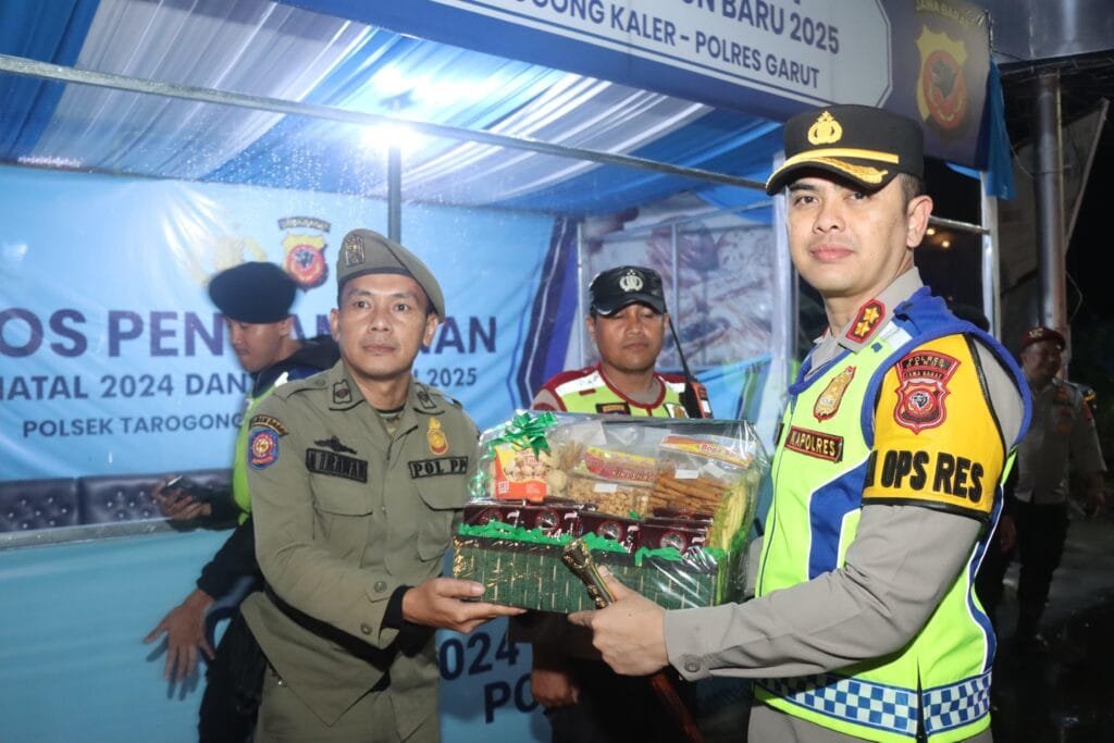 Pada kesempatan itu, Kapolres Garut beserta unsur forkopimda memberikan bingkisan berupa paket sembako kepada petugas yang sedang berjaga di Pos Pam, sebagai bentuk apresiasi atas dedikasi mereka dalam menjaga keamanan selama malam Tahun Baru.