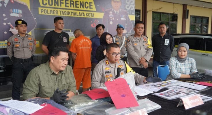 POLRES TASIK KOTA-Jejak-kriminal.com-Kapolres Tasikmalaya Kota AKBP JOKO SULISTIONO S.H.S.I.K., M.H., pimpin press rilis pengungkapan kasus pembunuhan janda asal Sleman yang jasadnya ditemukan di wilayah Kelurahan Urug Kawalu Kota Tasikmalaya, beberapa waktu lalu.