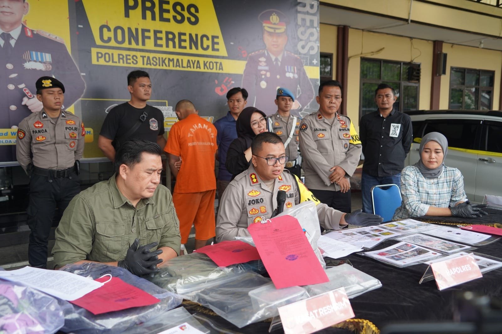 POLRES TASIK KOTA-Jejak-kriminal.com-Kapolres Tasikmalaya Kota AKBP JOKO SULISTIONO S.H.S.I.K., M.H., pimpin press rilis pengungkapan kasus pembunuhan janda asal Sleman yang jasadnya ditemukan di wilayah Kelurahan Urug Kawalu Kota Tasikmalaya, beberapa waktu lalu.