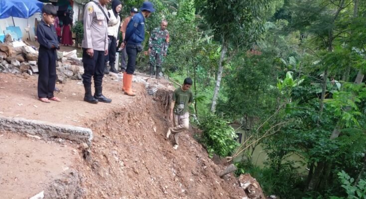 Garut | Kapolsek Banjarwangi, Iptu Tatang Sukirman, bersama sejumlah anggota kepolisian, turun langsung ke lapangan menindaklanjuti terjadinya bencana alam berupa tanah longsor dan pergeseran tanah yang melanda wilayah Kecamatan Banjarwangi.