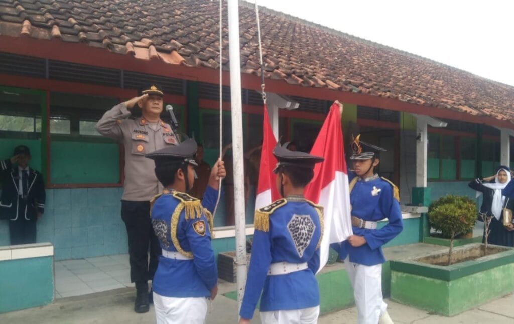 Garut | Kapolsek Wanaraja AKP Abusono, SH., MH., memimpin upacara pengibaran bendera merah putih di SMPN 1 Wanaraja. Senin (23/09/2024).