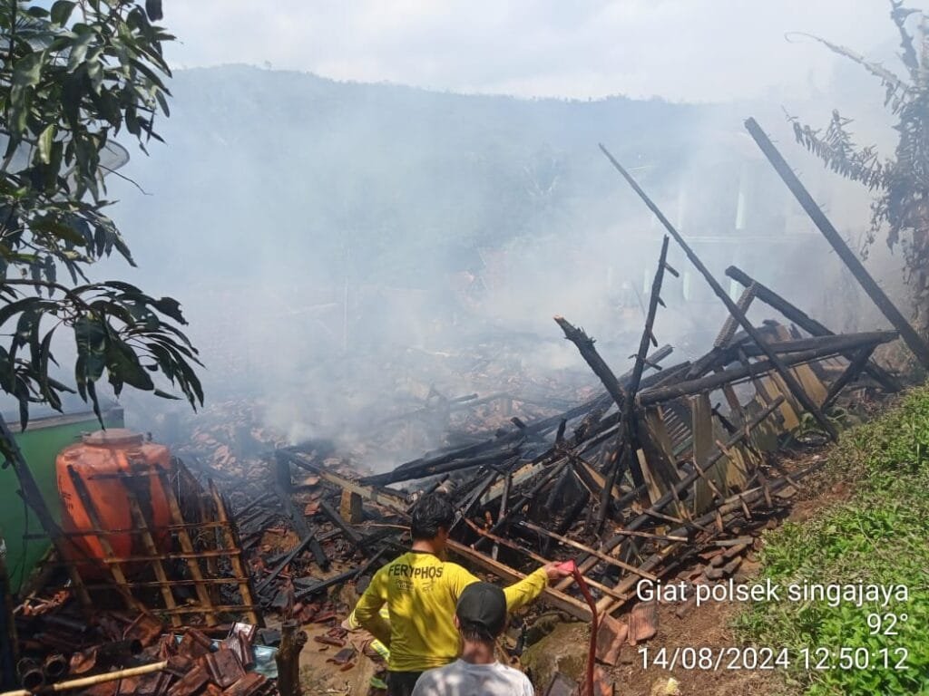 Garut | Polsek Singajaya Polres Garut lakukan cek TKP kebakaran Rumah yang melanda 3 unit rumah sekaligus. Rabu (13/08/2024).