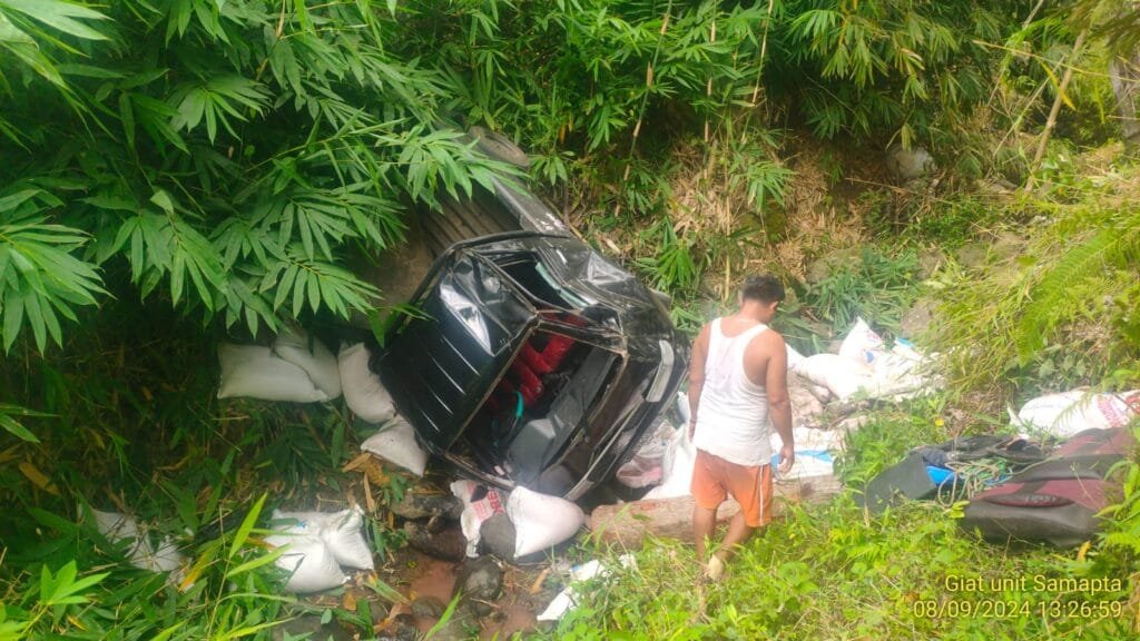 Garut | Polsek Pakenjeng Polres Garut cek tkp kejadian kecelakaan tunggal mobil di Jalan Kabupaten Paknejeng Bungbulang tepatnya Kampung Simpang Desa Sukamulya Kecamatan Pakenjeng Kabupaten Garut. Minggu (08/09/2024).