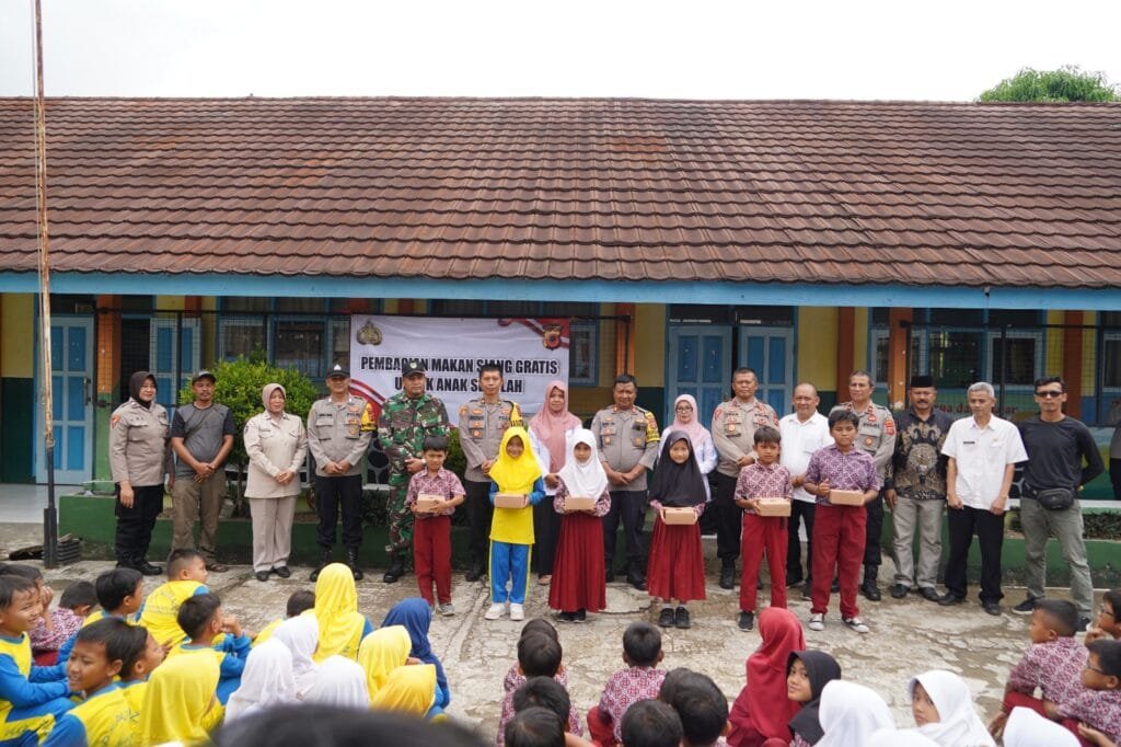 POLRES TASIK KOTA – Polres Tasikmalaya Kota menggelar kegiatan berbagi paket makan siang bergizi secara gratis kepada siswa dan guru di SD Negeri Paozan, Kelurahan Parakannyasag, Kec. Indihiang, Kota Tasikmalaya, Rabu (23/10/2024).