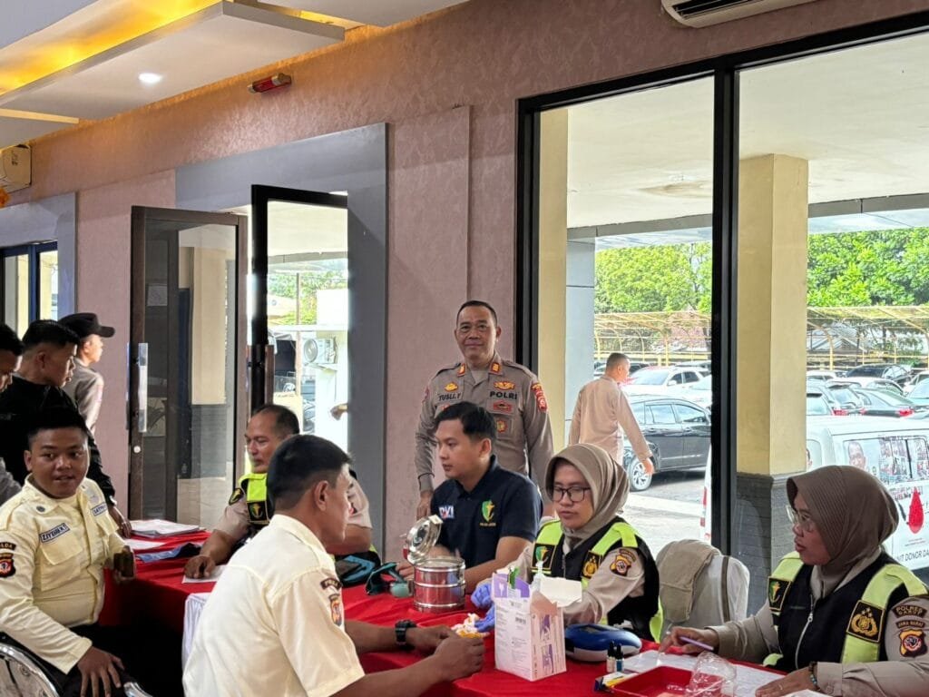 Kapolres Garut, AKBP Mochamad Fajar Gemilang menyampaikan apresiasinya terhadap antusiasme para peserta donor darah.