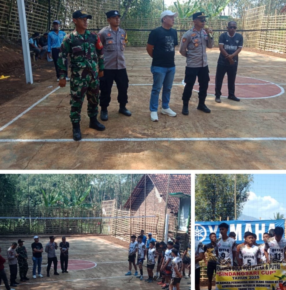 Suasana meriah mengawali pertandingan pertama, dalam pertandingan turnamen Voli Ball Sindangsari Cup. Kepala Desa Serta Kapolsek Leuwigoong datang untuk membuka turnamen bola voli dalam rangka menyambut Hari Ulang Tahun ke-80 Republik Indonesia.