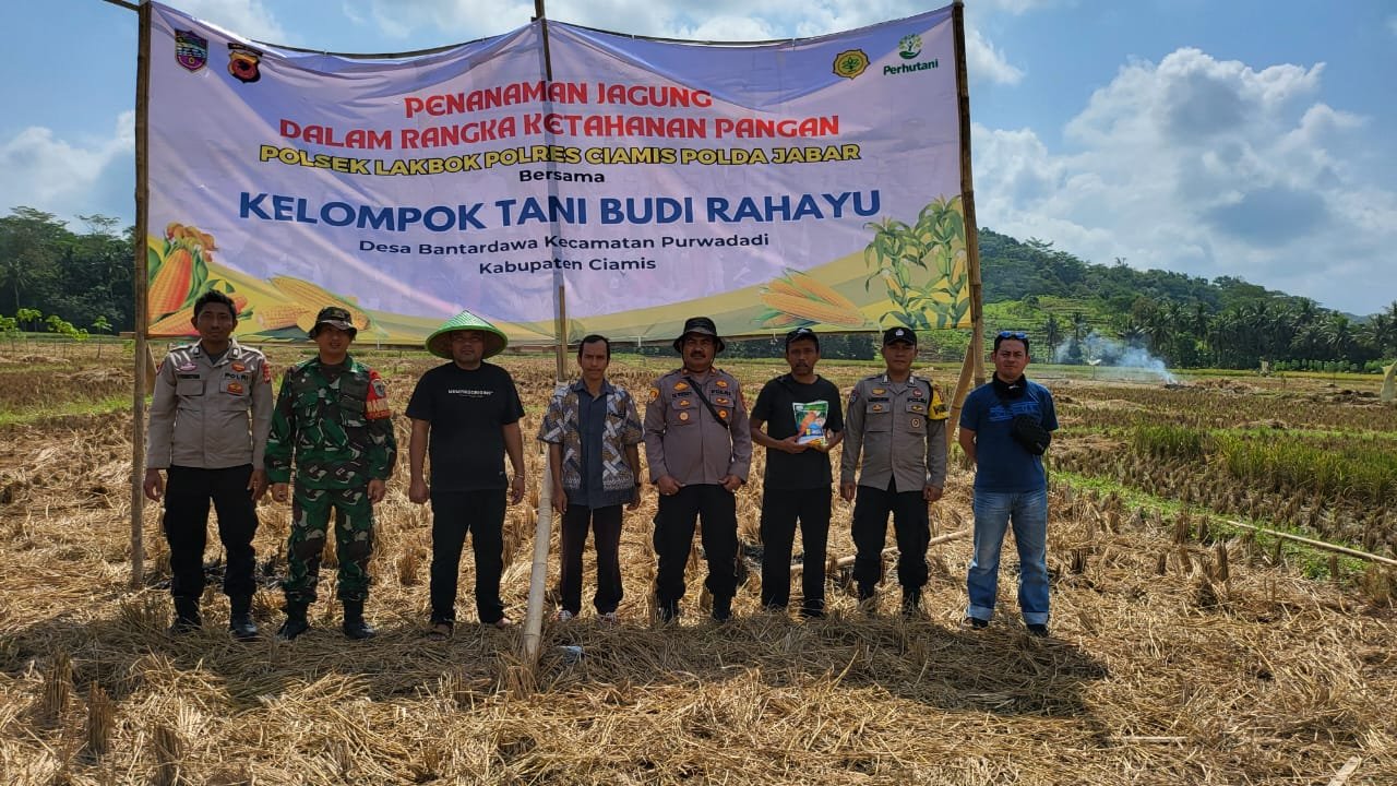Kapolres Ciamis Polda Jabar AKBP H. Hidayatullah, SH., S.I.K., melalui Kapolsek Lakbok Iptu Tri Widiyanto mengatakan, kegiatan ini bagian dari pada wujud kepedulian Polri ikut serta menyukseskan program ketahanan pangan nasional. Salah satunya ikut serta menanam hingga pemantauan sampai panen agar memastikan kesuksesan para petani di wilayah.