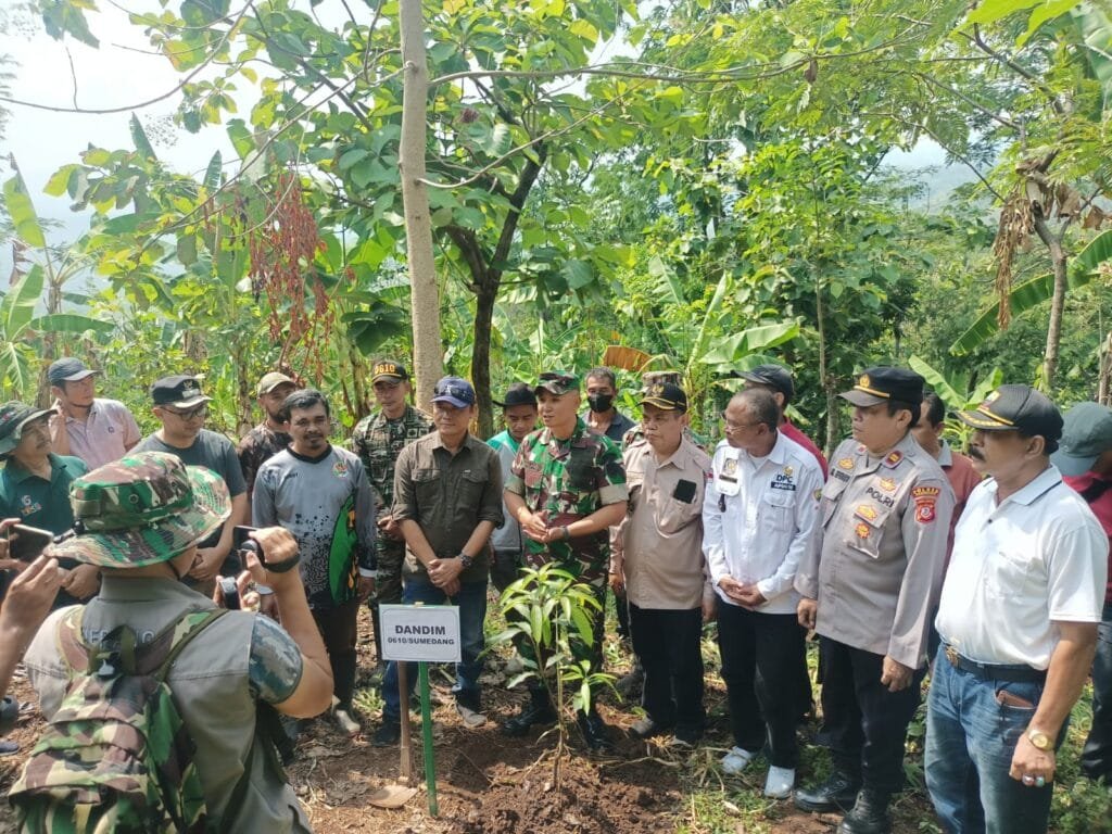 Sumedang – Dalam rangka menjaga kelestarian lingkungan hidup, Kodim 0610/Sumedang menggelar kegiatan Pembinaan Lingkungan Hidup penghijauan tahun 2024 bertempat di Perkebunan Blok Gunjae Dusun Ciloa Rt 02 Rw 01 Desa Pamekarsari kecamatan Surian Kabupaten Sumedang. Jum’at(25)10/2024)