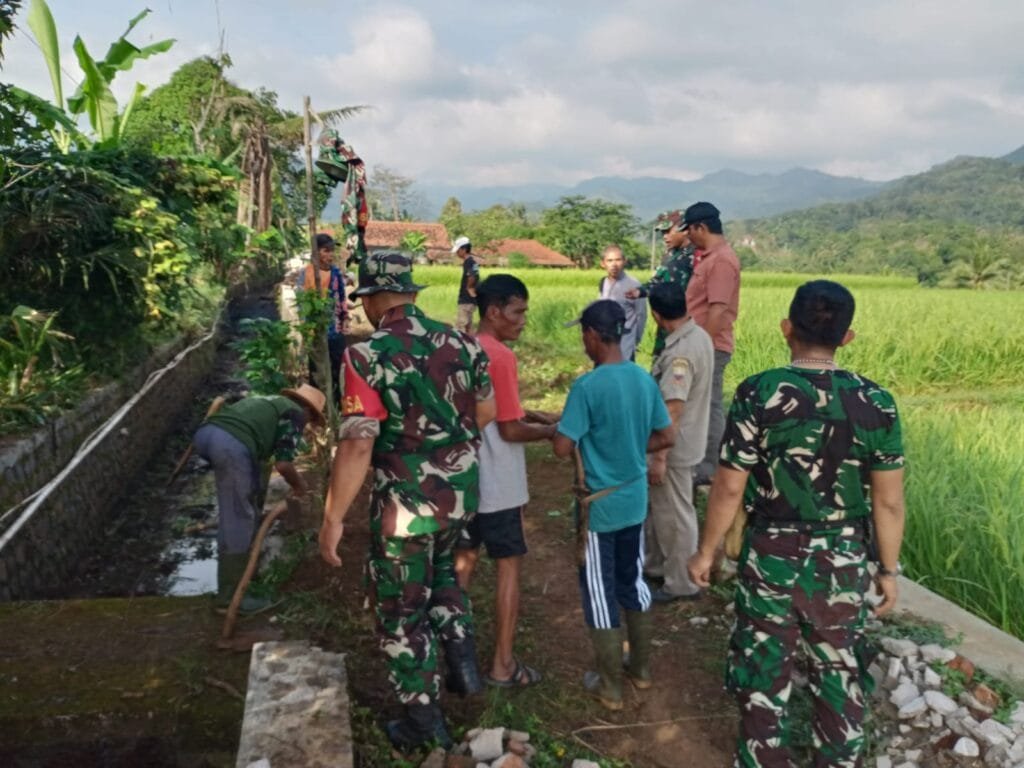 Sumedang- Dipimpin Danramil 1011/Situraja Kodim 0610/Sumedang Lettu Inf Sutisna, aggota koramil situraja beserta elemen masyarakat melaksanakan Karya bakti pembersihan saluran irigasi Jalan Usaha Tani sepanjang 150 Meter di desa Cijeler kecamatan Situraja Kabupaten Sumedang. Kamis(27/06/2024)