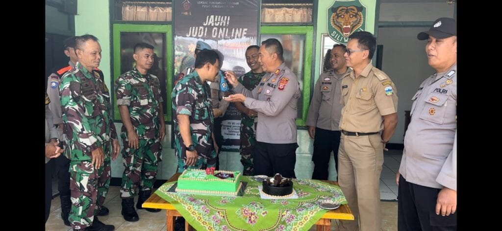Garut | Dalam rangka merayakan Hari Ulang Tahun Tentara Nasional Indonesia (TNI) yang ke-79 Polsek Banyuresmi memberikan ucapan selamat dan kue ulang tahun kepada Danramil 1112 Banyuresmi dan anggotanya.