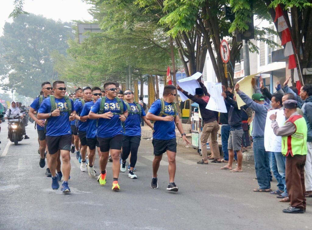 Nagreg – Dalam rangka meningkatkan dan mengasah kemampuan fisik serta menjaga kebugaran prajurit, Danyonif 330, Letkol Inf Dedy Pungky Irawanto, S.I.P., M.I.Pol mengajak personel Yonif 330 Tri Dharma untuk melaksanakan kegiatan jasmani lari beban dalam hubungan kelompok menempuh jarak sejauh 7 Km, pada Kamis (22/8/24).