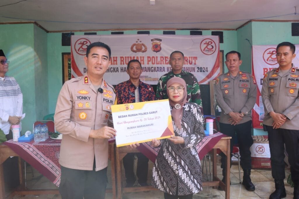 Garut – Kepolisian Resort Garut menggelar acara istimewa dalam rangka memperingati Hari Ulang Tahun Bhayangkara ke-78. Bertempat di Kp. Muara Sanding, Kecamatan Garut Kota, Kabupaten Garut ini menandai dimulainya program bedah rumah yang diselenggarakan oleh Polres Garut. Jum’at (21/06/2024)