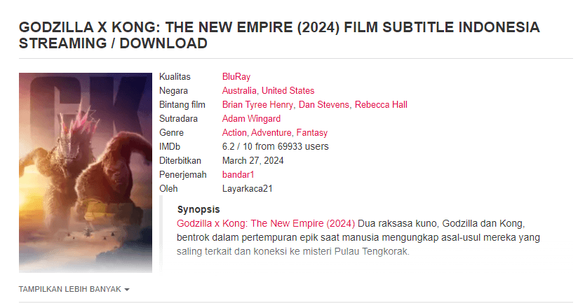 LK21,LayarKaca21,Streaming film LK21,Nonton film gratis,Download film LK21,Film terbaru LK21,LK21 subtitle Indonesia,LK21 bioskop online,Nonton film online,Film HD LK21.ini menjadi pengingat bagi kita semua akan pentingnya mendukung industri film dengan cara yang benar dan legal. Diharapkan dengan penangkapan para pelaku di balik LK21, dapat menjadi efek jera bagi mereka yang berniat untuk melakukan pelanggaran serupa di masa mendatang. Masyarakat pun diimbau untuk lebih bijak dalam memilih platform hiburan digital agar industri kreatif Indonesia dapat terus berkembang dan menghasilkan karya-karya terbaik.