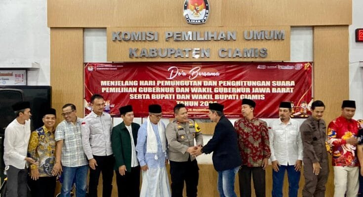 “Doa bersama ini merupakan bagian dari pada upaya kami, Polres Ciamis Polda Jabar bersama unsur Forkopimda Kabupaten Ciamis dan KPU serta Bawaslu dalam menyukseskan Pilkada Serentak 2024 yang aman dan nyaman serta harmonis,” ujar Kapolres Ciamis Polda Jabar AKBP Akmal SH., S.I.K., M.H., melalui Wakapolres Ciamis Kompol Muhamad Rustandi, S.I.K., dalam keterangan resminya, Rabu (27/11/2024).