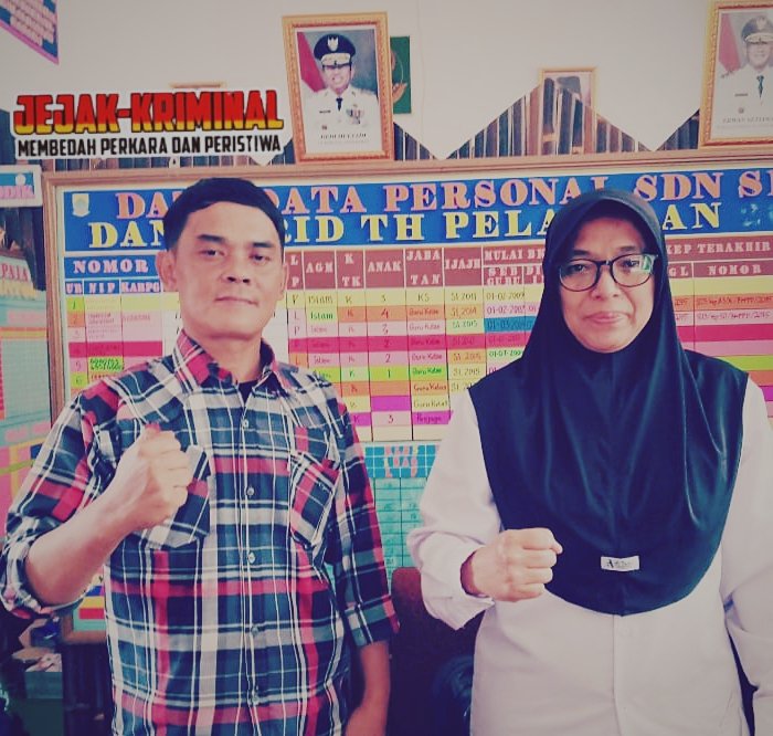 Kepala SDN Sintok, Ibu Nurjanah, S.Pd., menyambut langsung kedatangan perwakilan media Jejak Kriminal, Asep Hidayat, yang dikenal sebagai wartawan humanis.