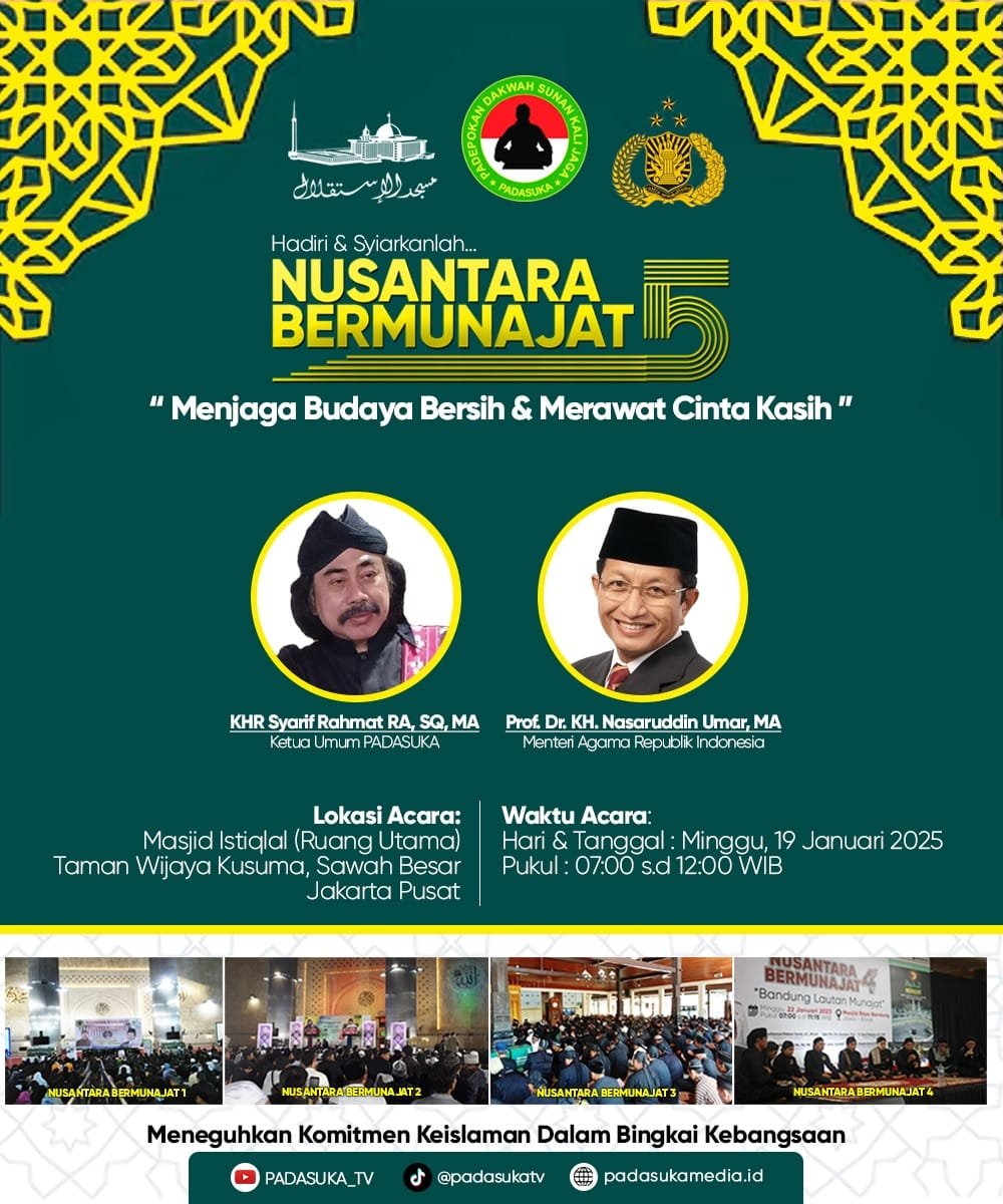 Jejak-kriminal.com, JAKARTA – Menteri Agama Republik Indonesia (RI), Prof. Dr. KH. Nasaruddin Umar, MA., dijadwalkan akan menghadiri kegiatan Nusantara Bermunajat Ke-5 (NB5) yang akan diselenggarakan pada Minggu, 19 Januari 2025, di Masjid Istiqlal, Jakarta.