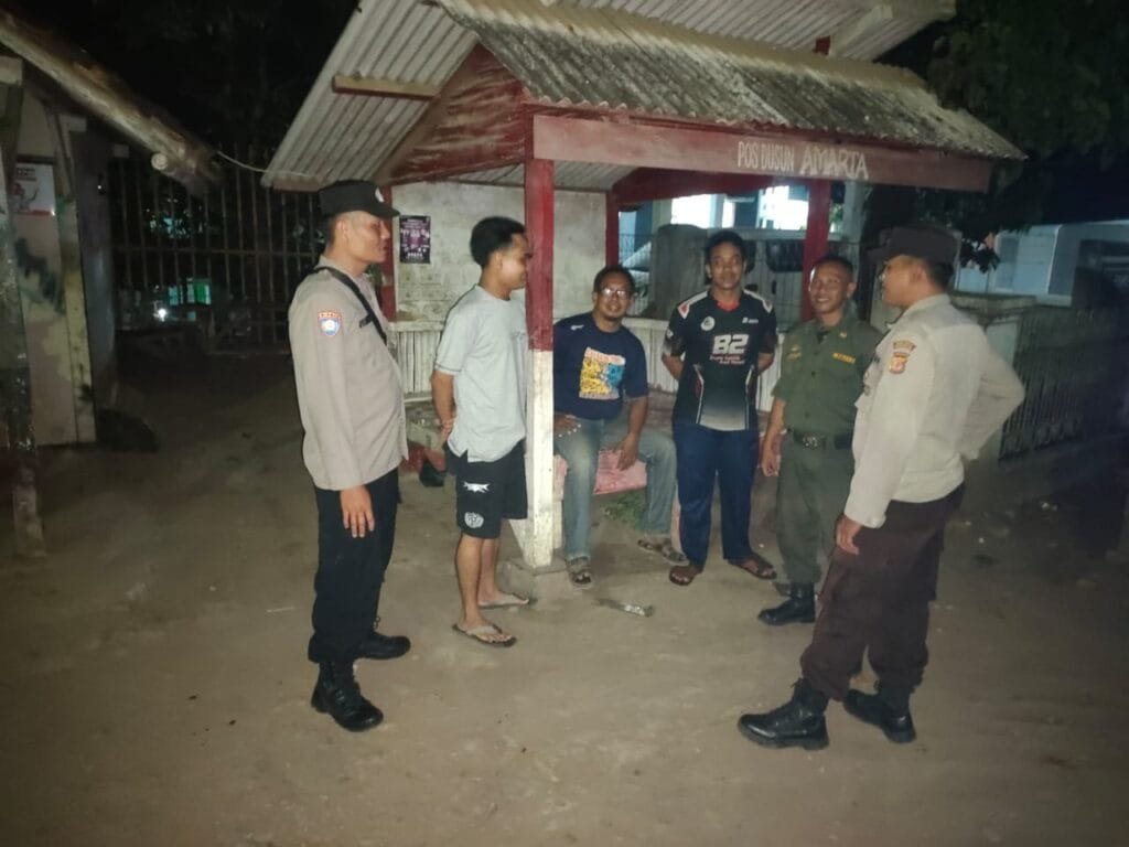 Tingkatkan Kondusifitas di wilayah patroli malam Połsek Cilamaya Ngawangkong Pos Ronda Sembari Pembinaan Satkamling.